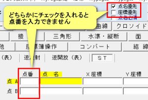 下図のチェックボックにチェックされていると、点番入力ボックスは選択できません